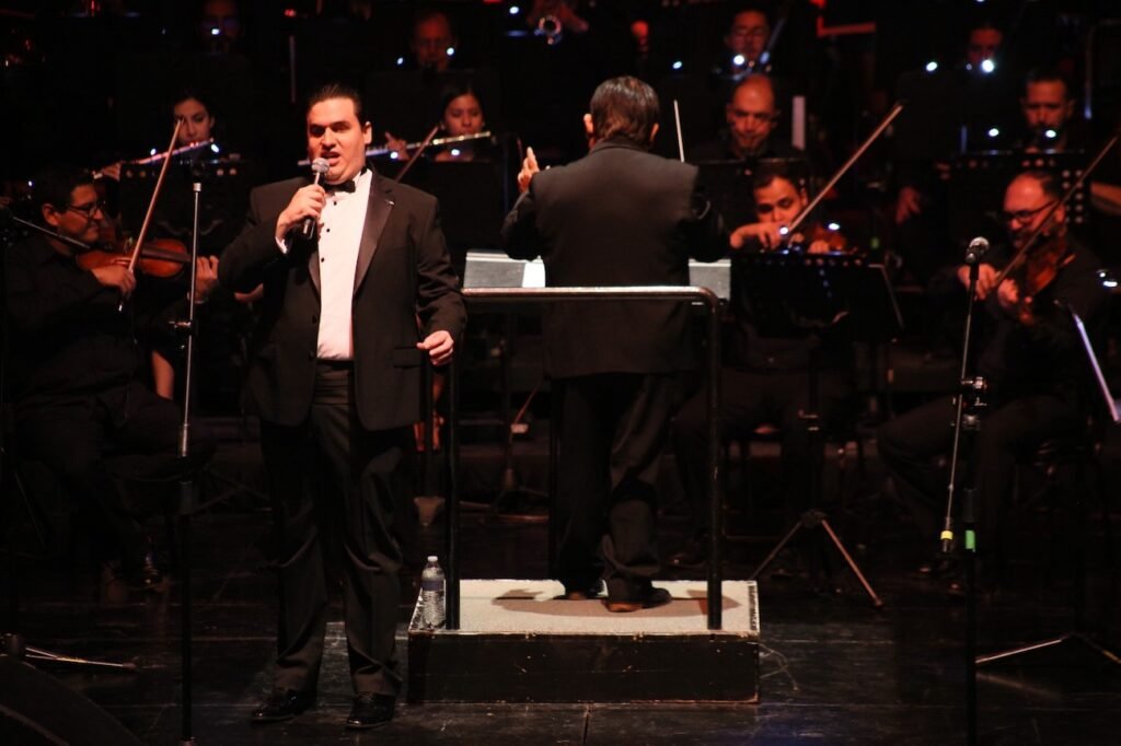 El concierto continuó con temas como “Te sigo amando”, “Yo no nací para amar” y la noche cobró un momento especial cuando el maestro Velázquez cantó, con un emotivo acompañamiento en las cuerdas y alientos la canción “Amor eterno”, de ahí siguió “Hasta que te conocí” y antes de despedirse el tenor, reconocido como uno de los más destacados en el panorama actual, regresó para regalarle al público “Querida” y el el “Noa Noa”, junto con la cantante, orquesta y coro.